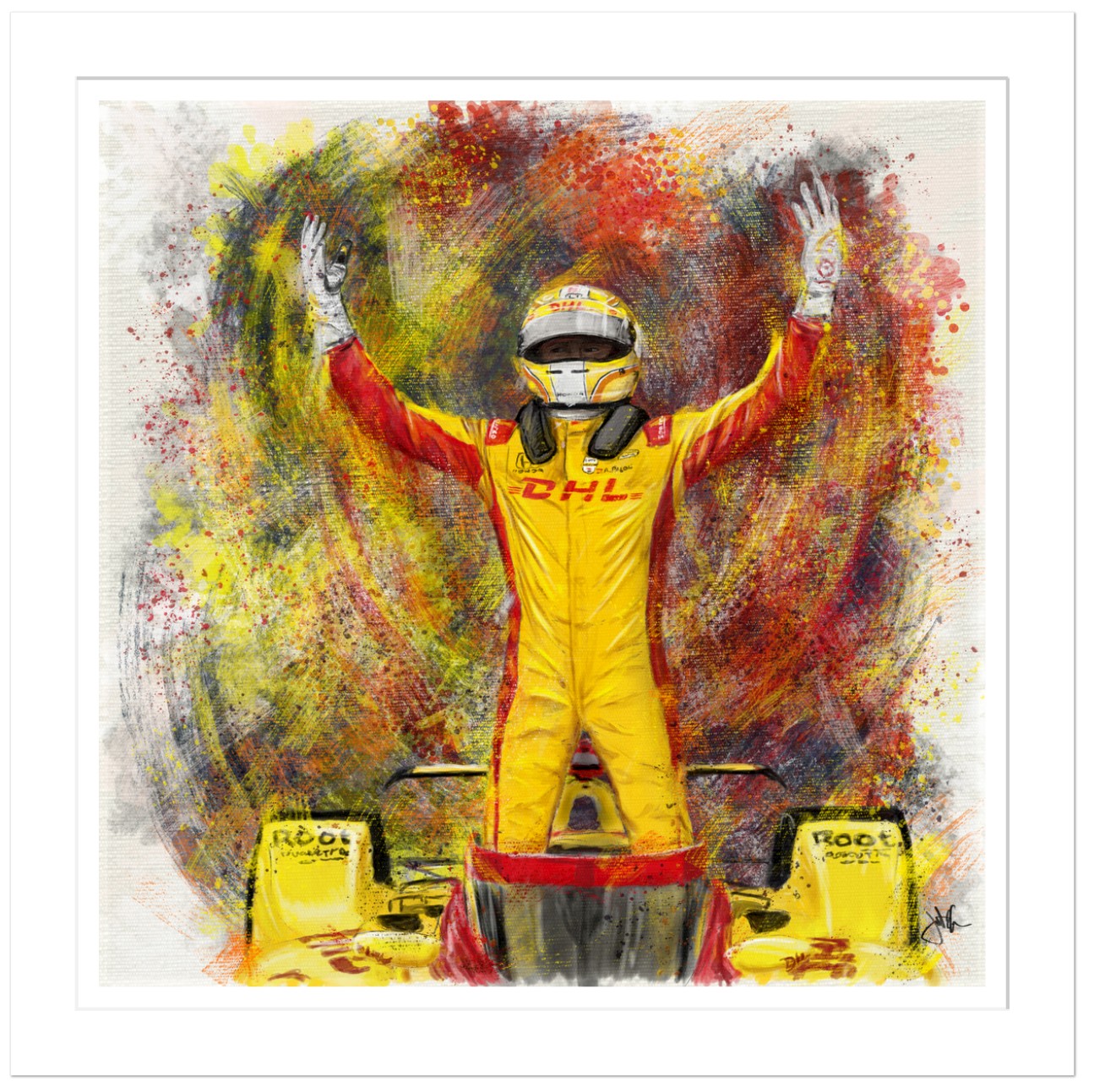 After the Silence captures the moment just after victory—when the engine is shut off, the noise fades, and realization sets in. Alex Palou stands in the center of the track, arms raised, as the energy of the Indianapolis 500 gives way to stillness.