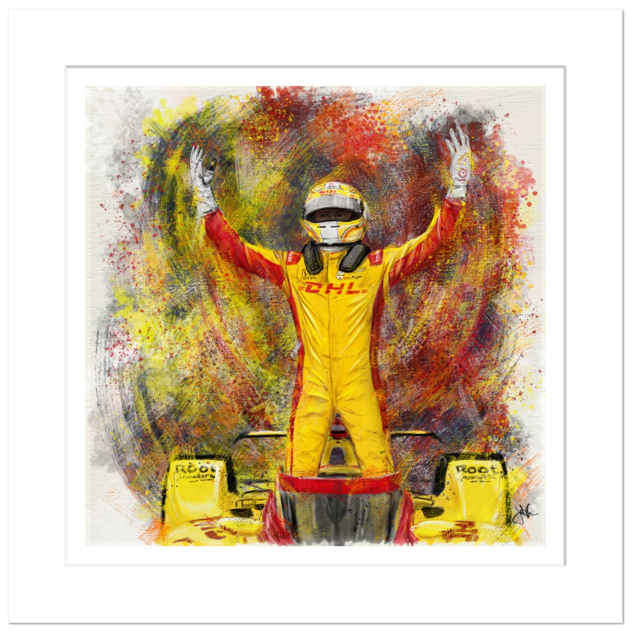 After the Silence captures the moment just after victory—when the engine is shut off, the noise fades, and realization sets in. Alex Palou stands in the center of the track, arms raised, as the energy of the Indianapolis 500 gives way to stillness.